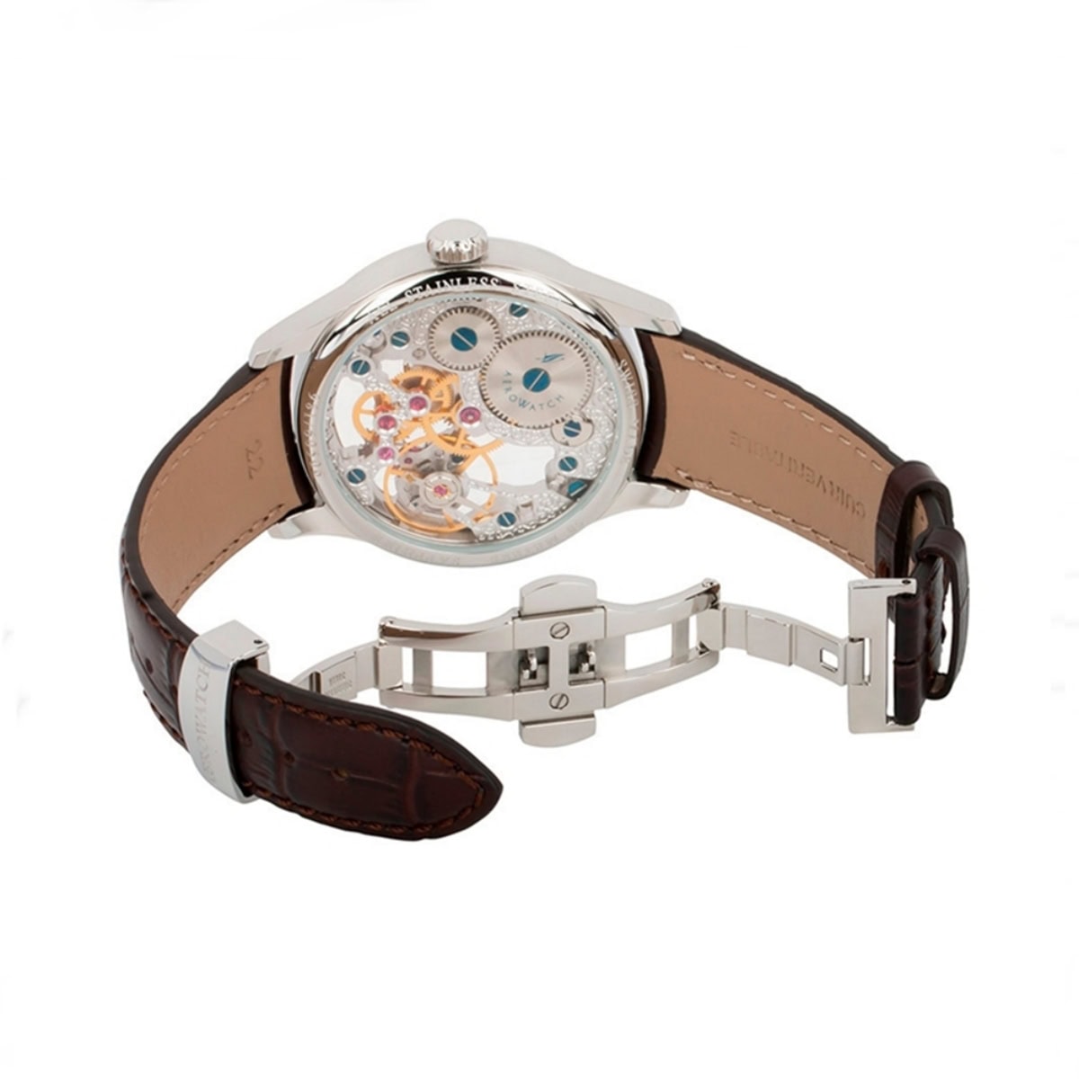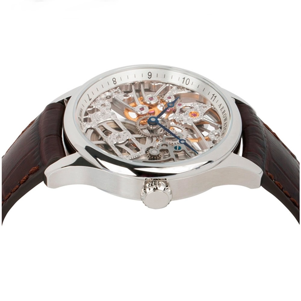 Aerowatch Renaissance Big Mechanical Skeleton 50931-AA01 is an elegant watch that is perfect for any formal occasion. The steel lucent case has a movement inside.The watch is on a black leather strap. Not only does it improve the comfort, but also the look of the whole watch.