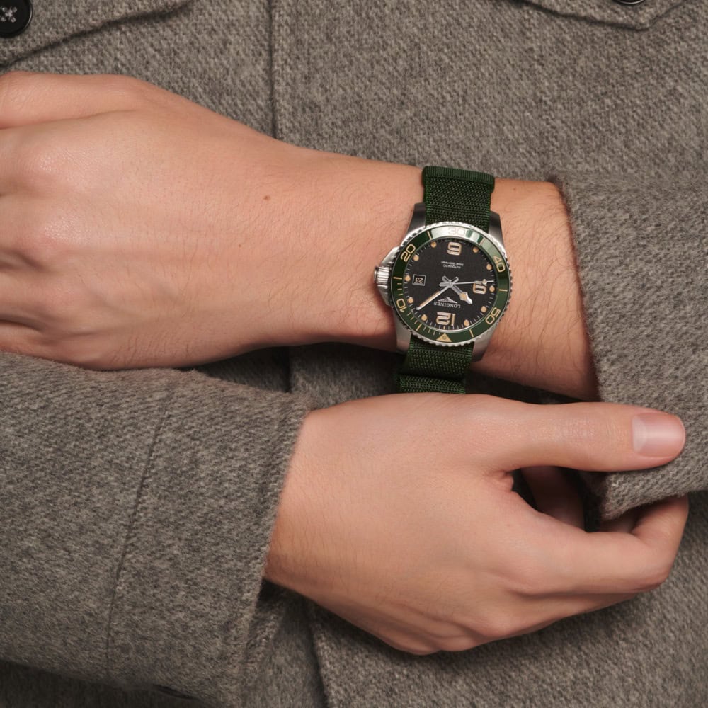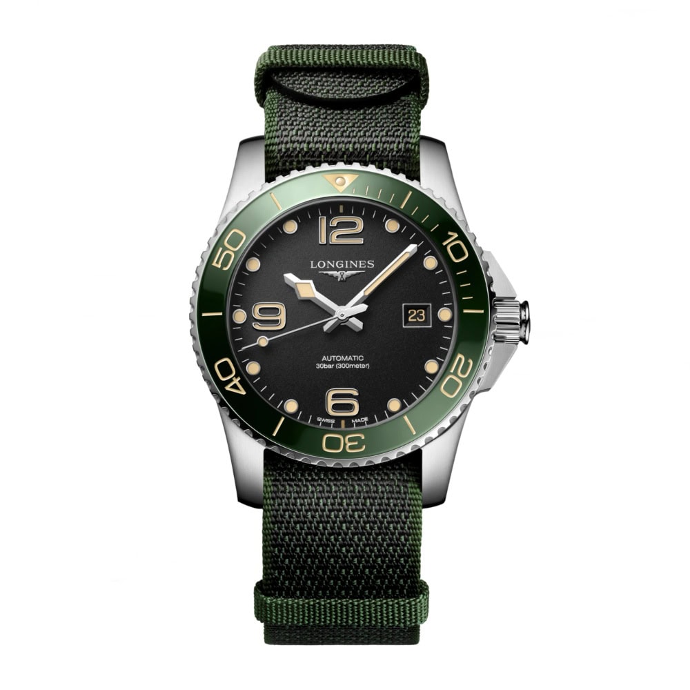 Inspired by the world of water sports, the HydroConquest collection stands out with its daring design. Water-resistant up to 30 bar (300 m) with a unidirectional rotating bezel and screw-down crown and case back, it guarantees exceptional reliability at all times.