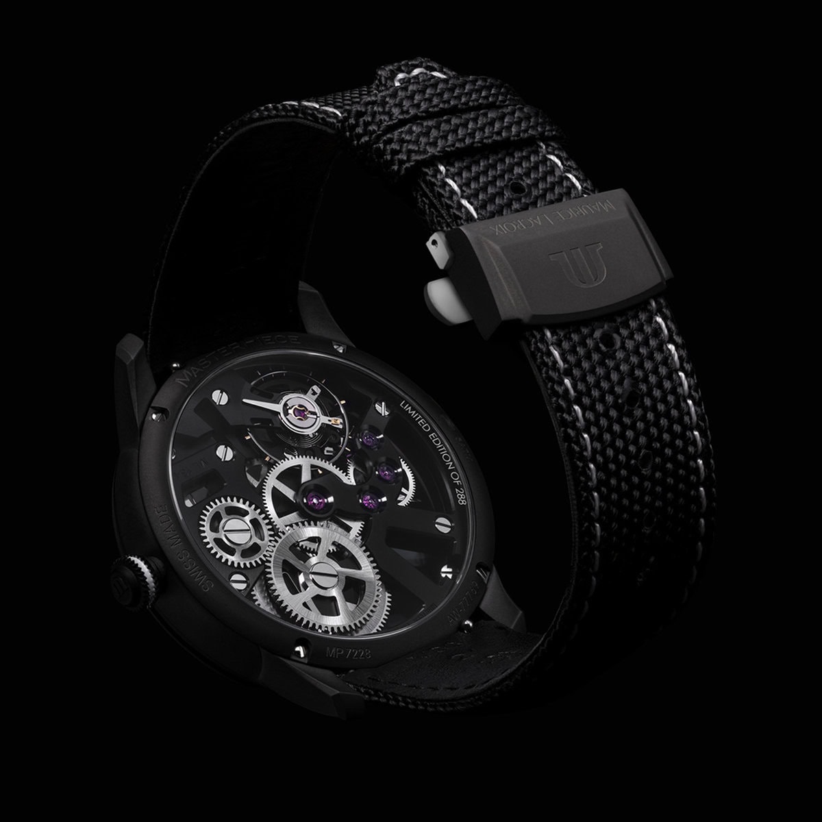 MASTERPIECE SKELETON DIAL ALBEL NOIR MANUAL WINDING GENT NYLON STRAP