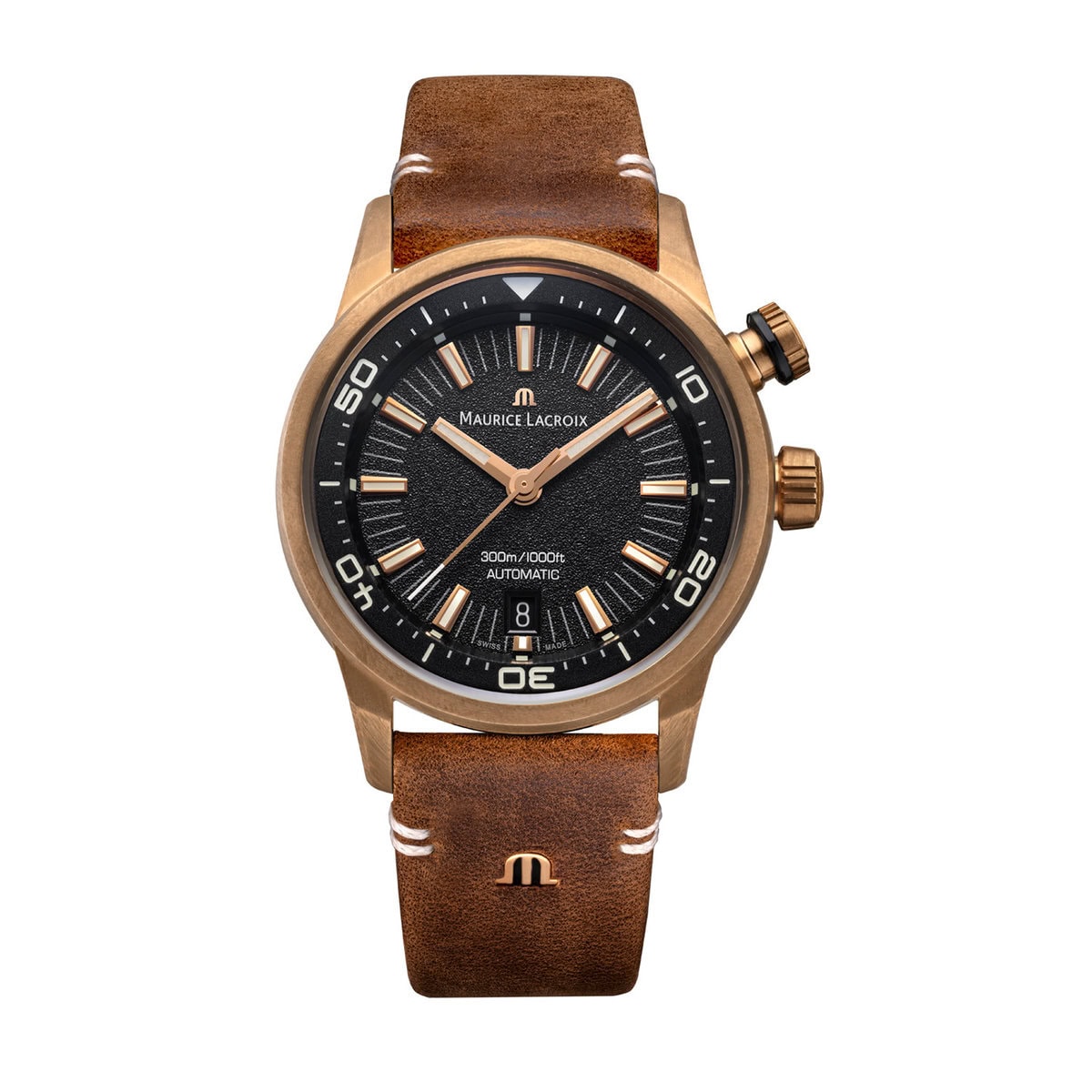 The watch includes hours, minutes, seconds, and a date at 6 o'clock.