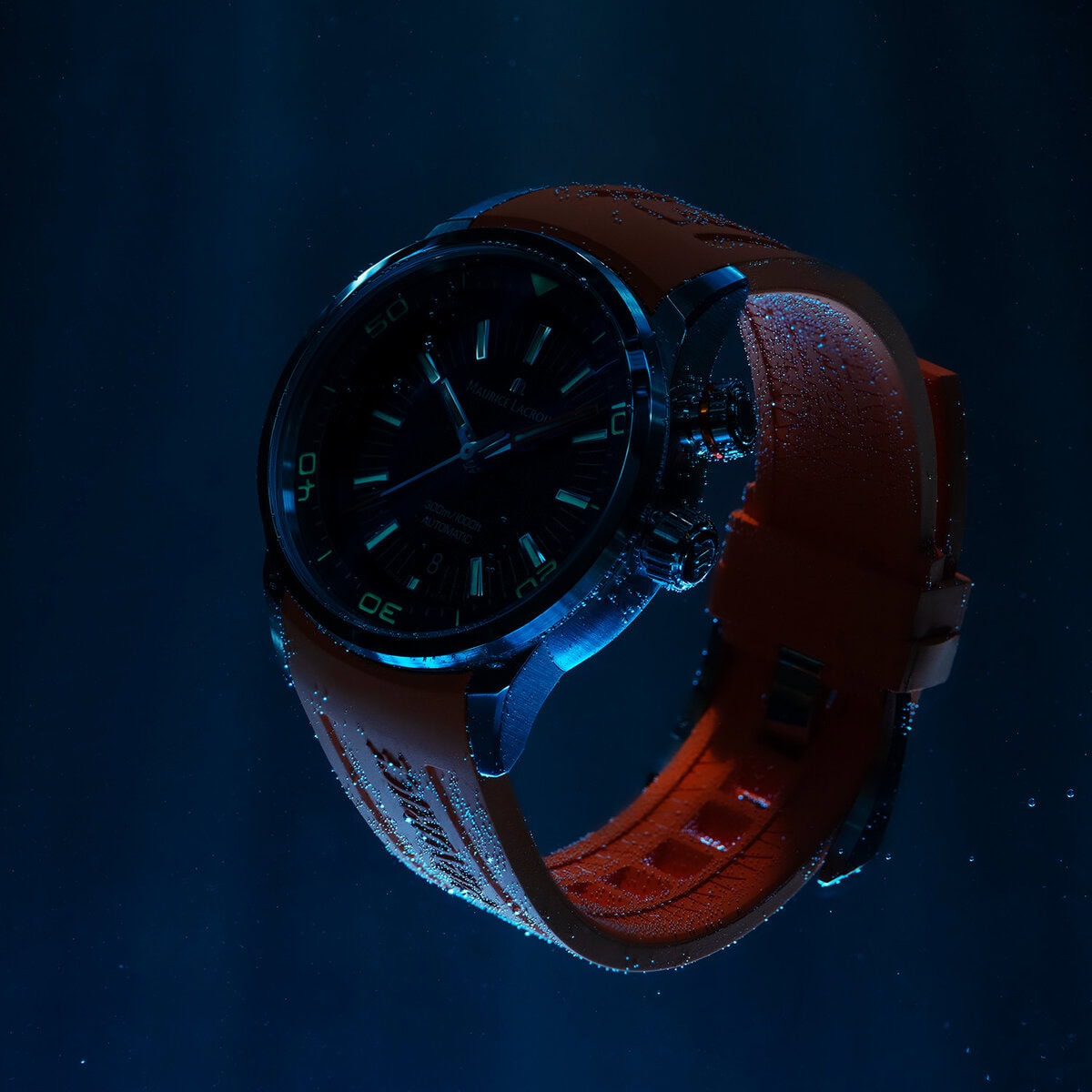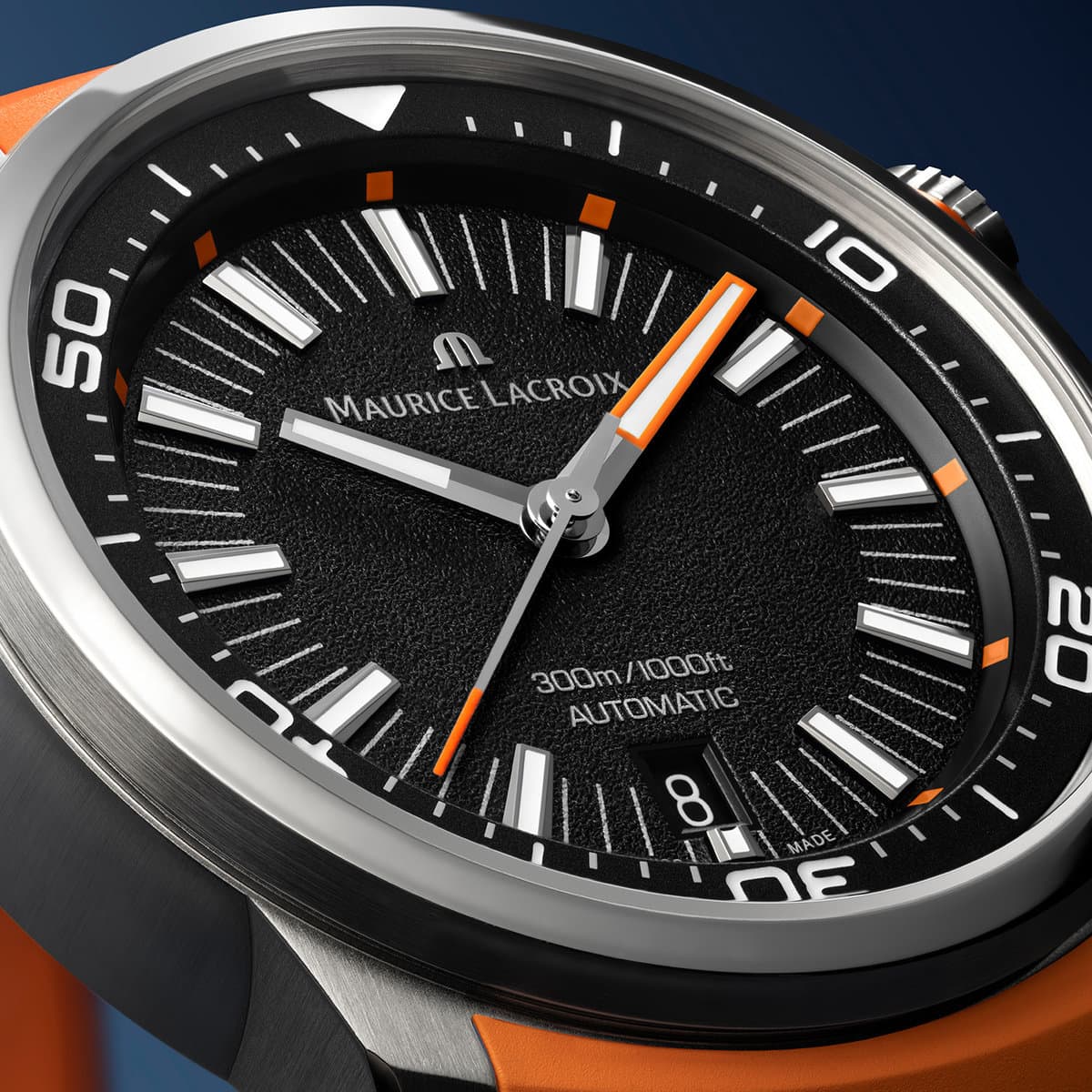 The watch includes hours, minutes, seconds, and a date at 6 o'clock.