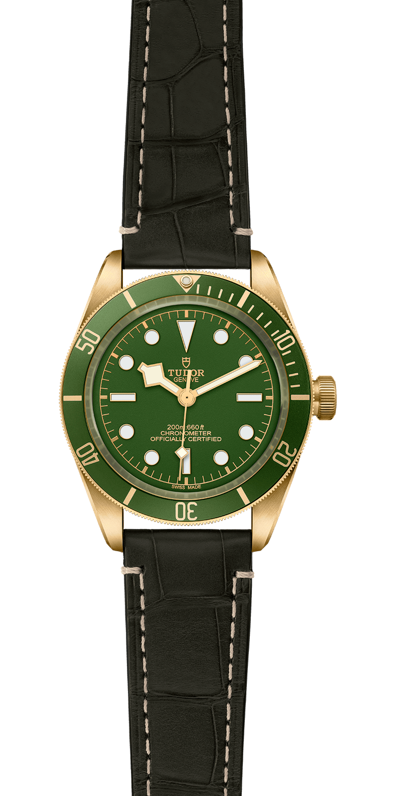 A bold version of its popular Black Bay 58 line, the Black Bay 58 18K comes in 18 ct yellow gold with an open case back, Manufacture Calibre and now a solid gold bracelet, complete with “T-fit” clasp. Its name is of course, a reference to the precious metal of its case and bracelet, but also to 1958, the year in which the first TUDOR divers’ watch waterproof to 200 metres (660 ft), reference 7924 or “Big Crown”, was introduced.