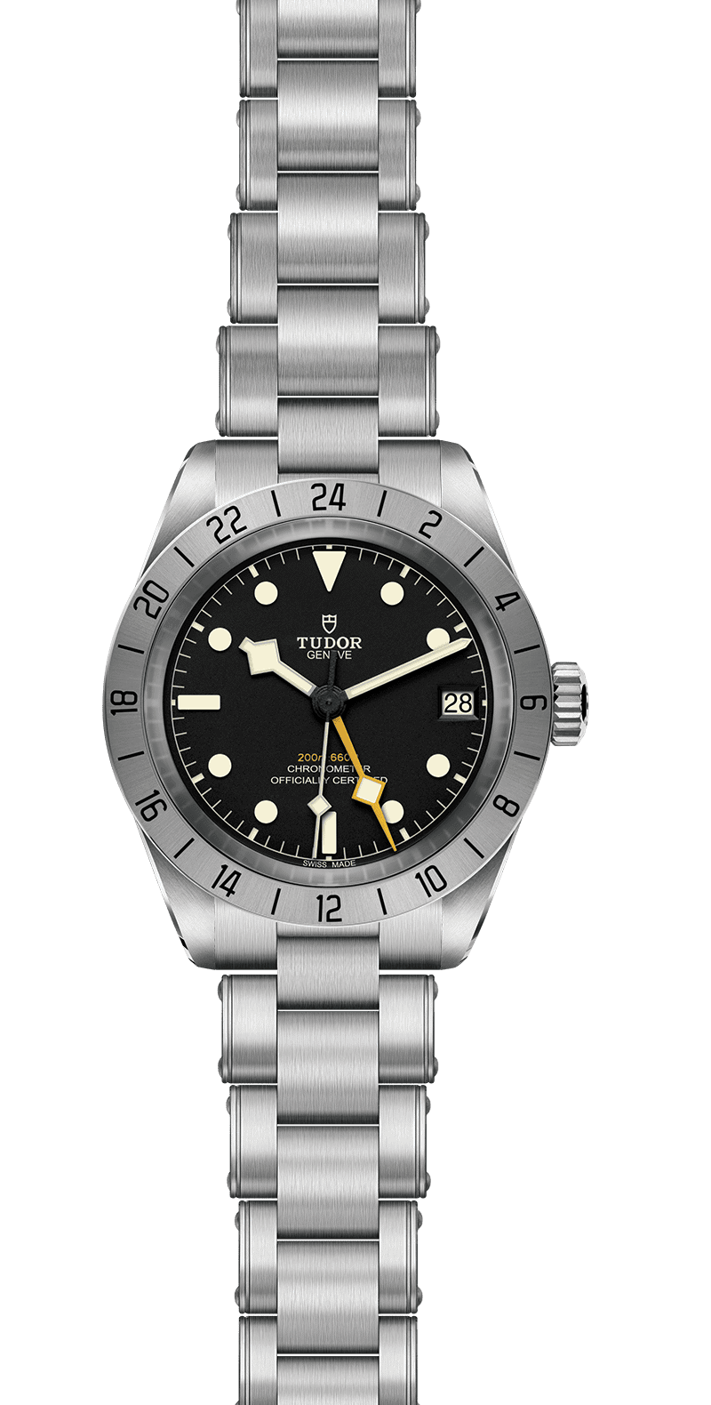 The Adventurers' Black Bay, the Black Bay Pro is a technical model with a whole new aesthetic: a tool-watch designed for professional use. With a 39mm case and a fixed steel bezel the watch boasts a Manufacture Calibre with built-in GMT function.