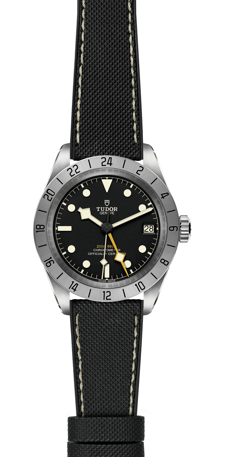 The Adventurers' Black Bay, the Black Bay Pro is a technical model with a whole new aesthetic: a tool-watch designed for professional use. With a 39mm case and a fixed steel bezel the watch boasts a Manufacture Calibre with built-in GMT function.